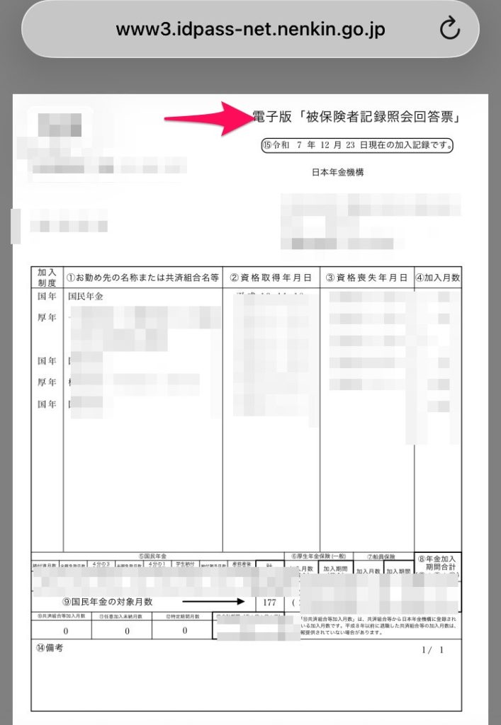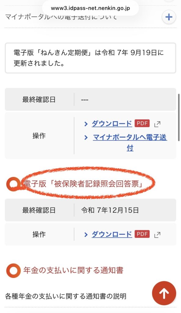 電子版「被保険者記録照会回答票」をPDF形式でダウンロードして保存します。