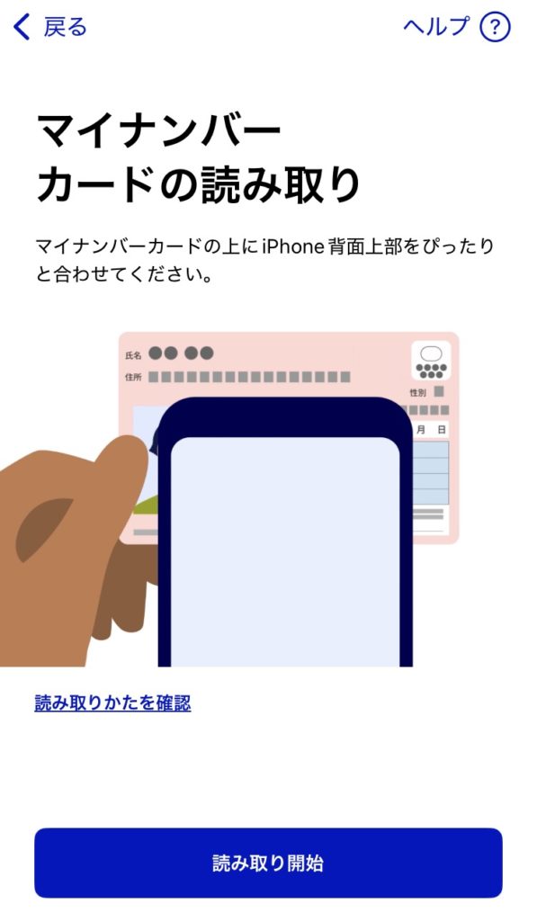 次に、スマートフォンでマイナンバーカードを読み取ります。
